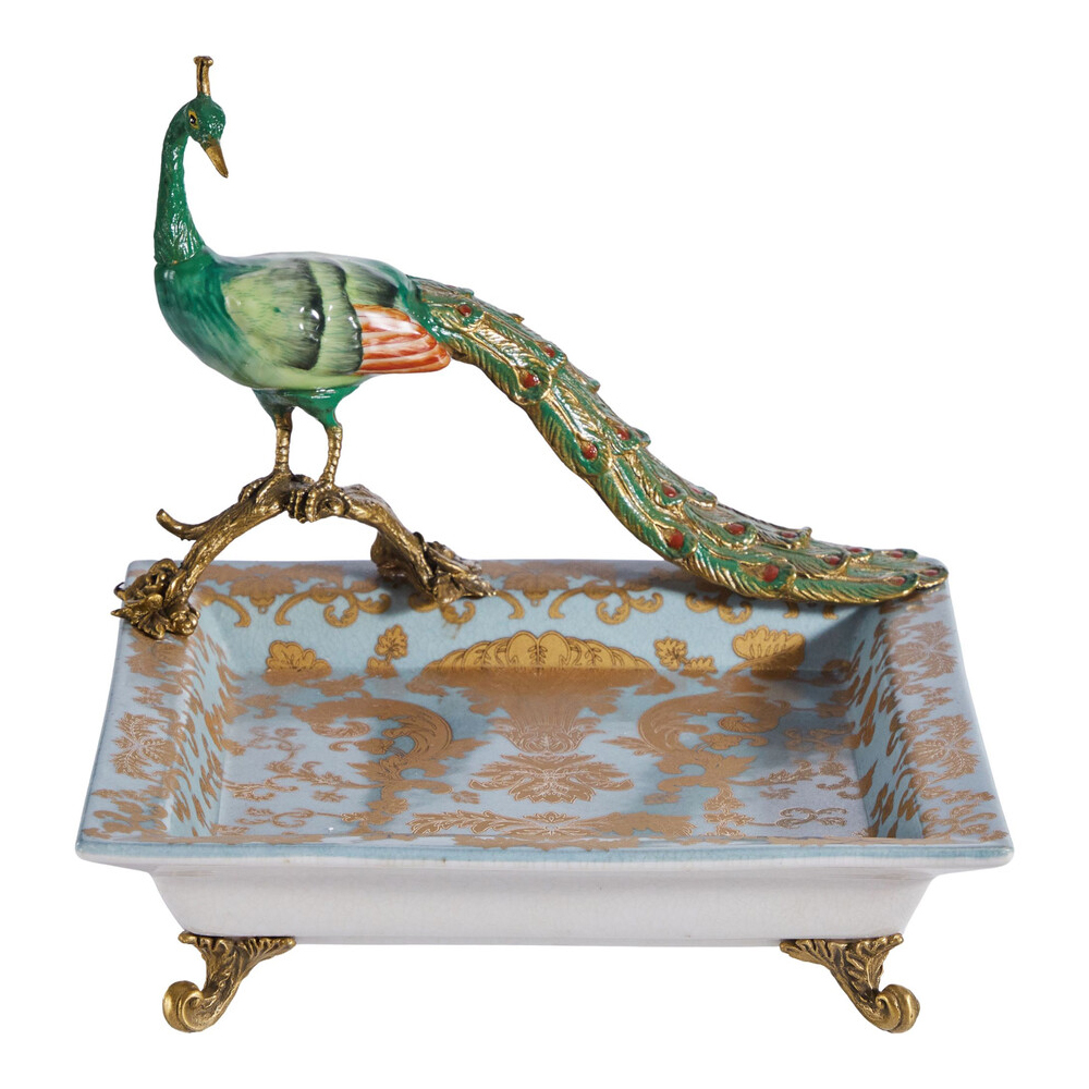 Блюдо квадратное с павлином на бронзовых ножках Eden Garden
