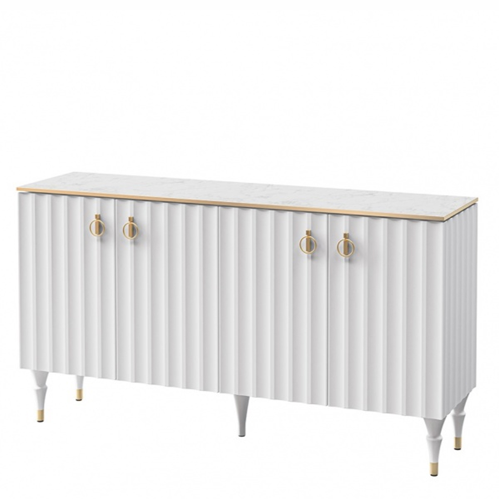 Консоль четырёхдверная с белым рельефным фасадом Expanses of Beauty Белый Золотой Белый Мрамор Bianco в Красноярске | Loft Concept