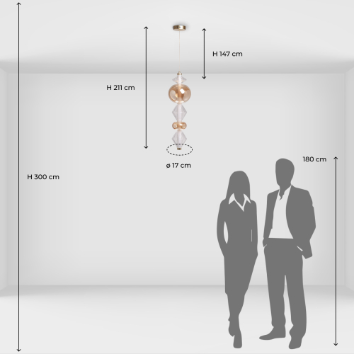 Подвесной светильник с вертикальной композицией из прозрачных и янтарных стеклянных шаров и ромбов Gabriel Scott Luna в Красноярске
